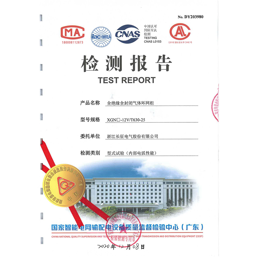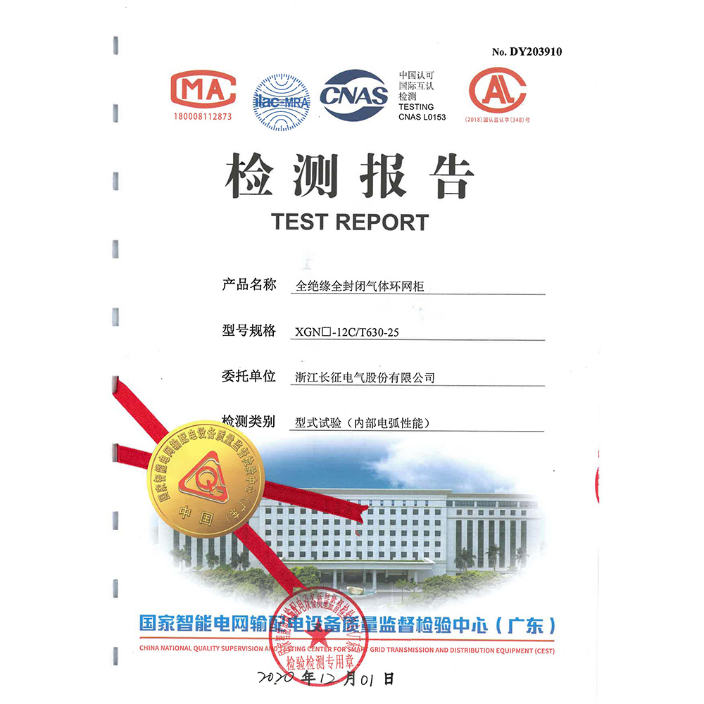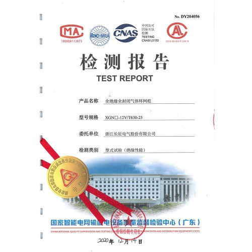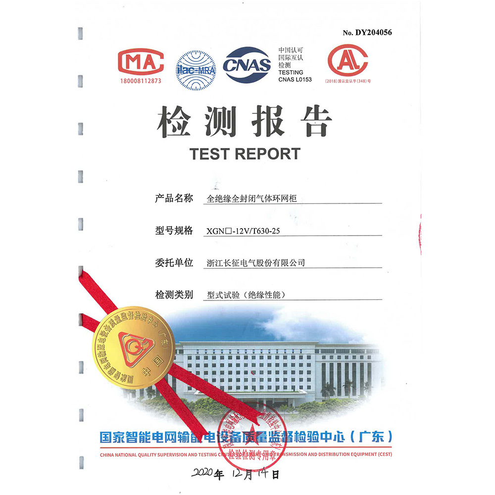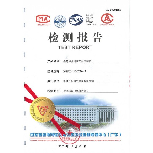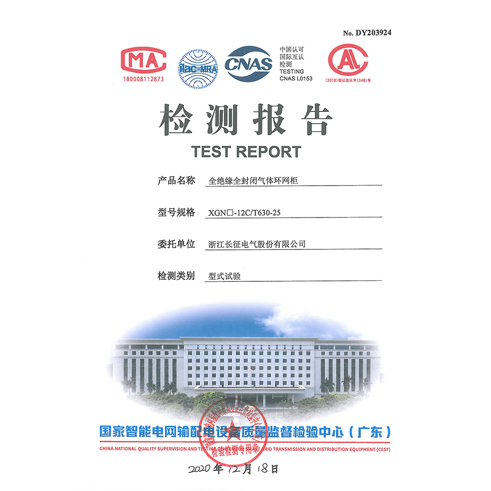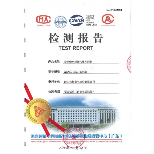 XGN□-12V/T630-25全絕緣全封閉氣體環(huán)網(wǎng)柜 檢測報告