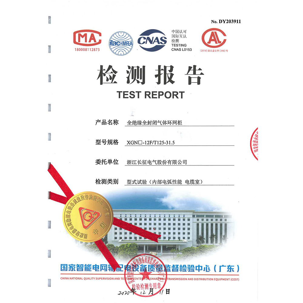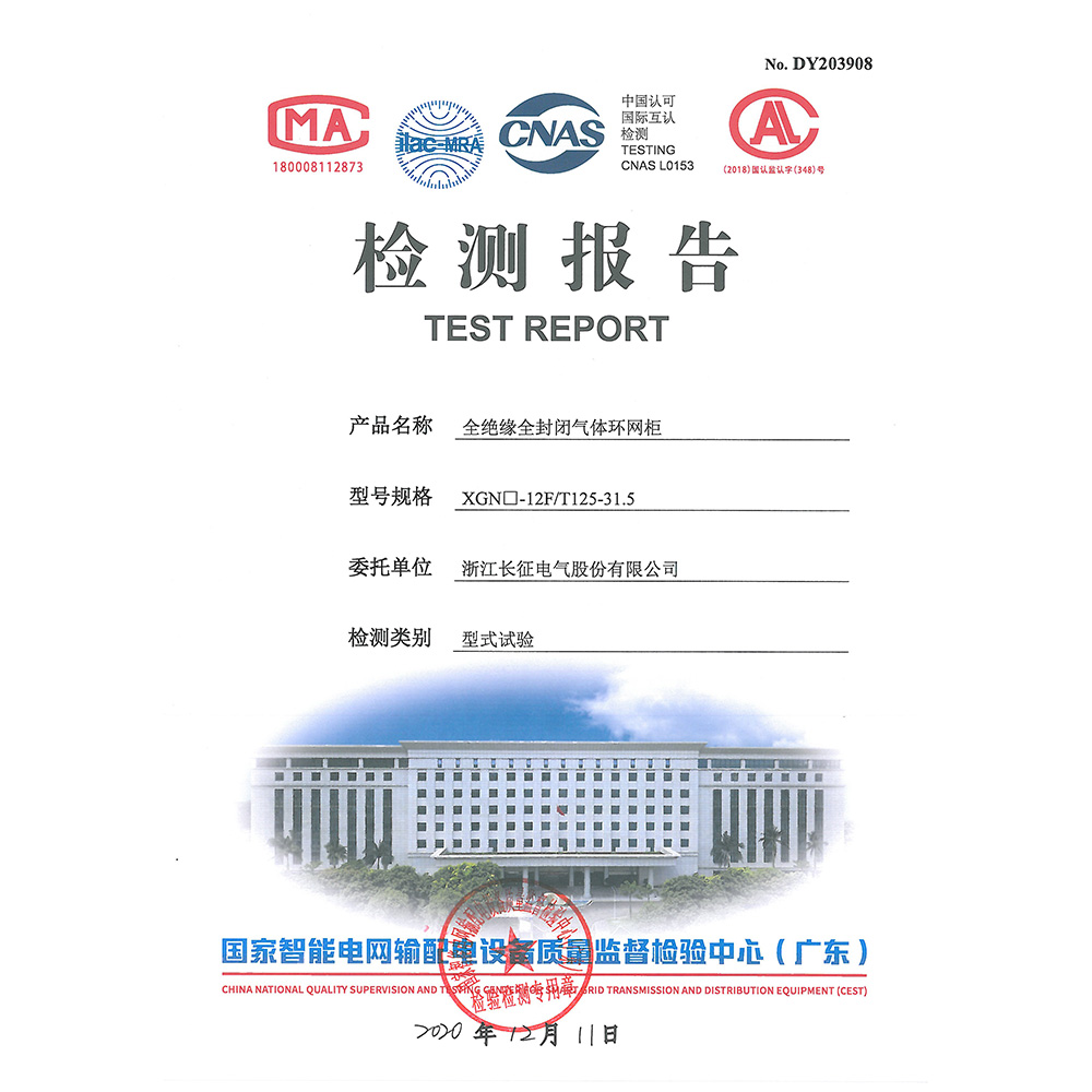 XGN□-12F/T125-31.5全絕緣全封閉氣體環(huán)網(wǎng)柜 檢測報告