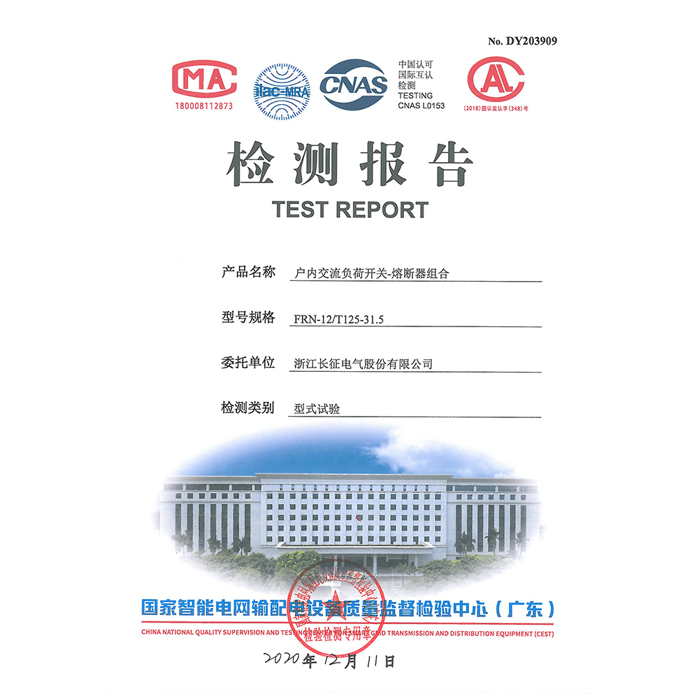 FRN-12/T125-31.5戶內交流負荷開關-熔斷器組合 檢測報告
