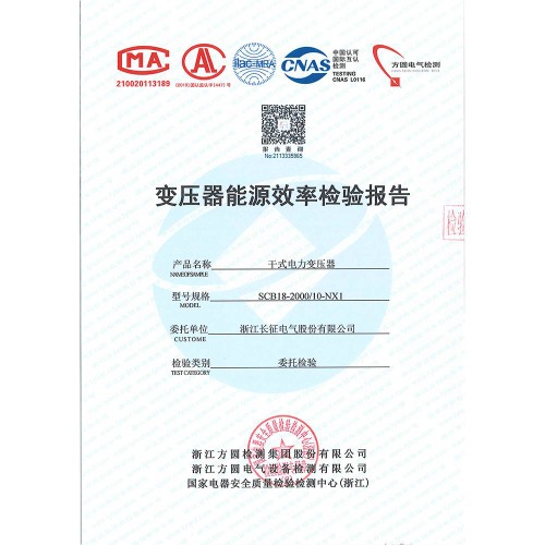 SCB18-2000/10-NX1干式電力變壓器 檢驗報告