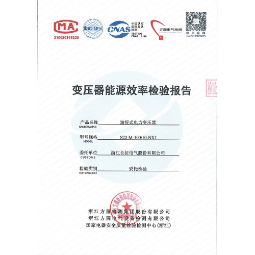 S22-M-100/10-NX1油浸式電力變壓器 檢驗報告