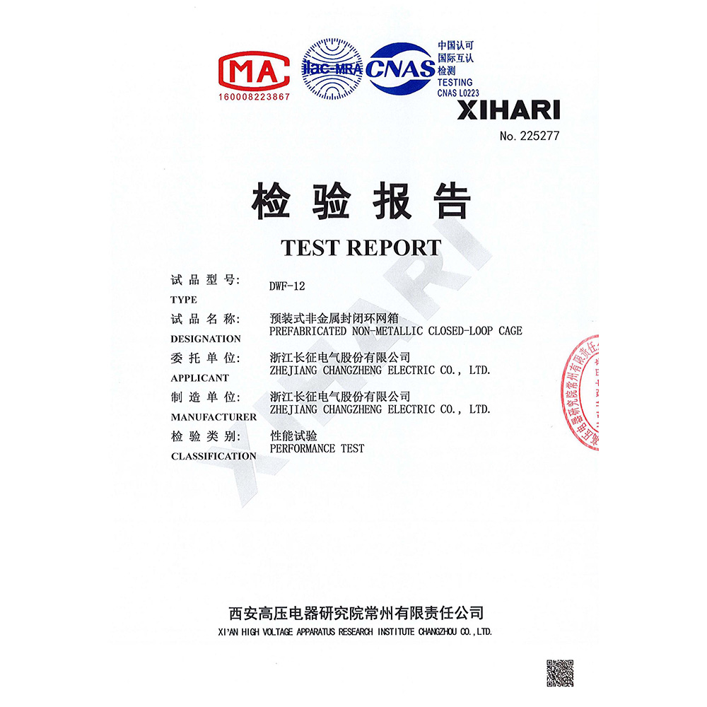 DWF-12預(yù)裝式非金屬封閉環(huán)網(wǎng)箱 檢驗報告