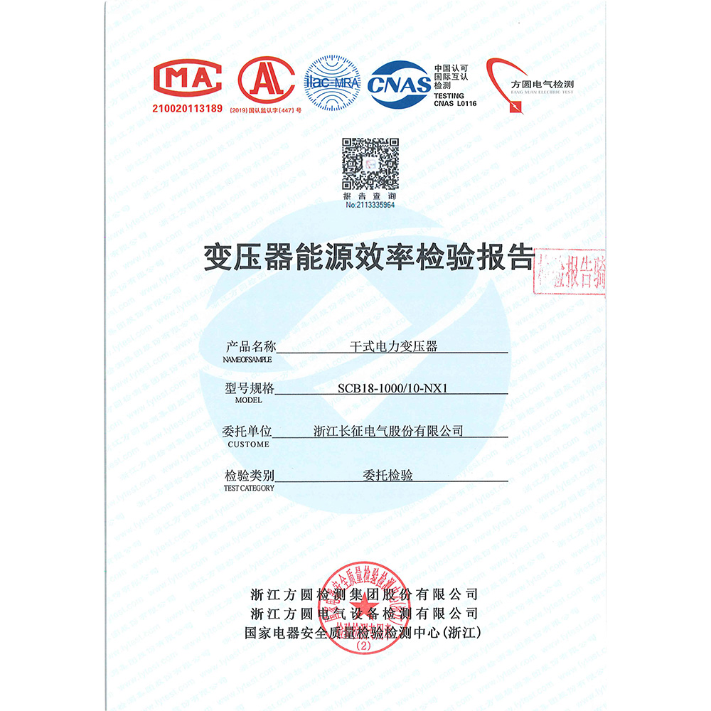 SCB18-1000/10-NX1干式電力變壓器 檢驗報告