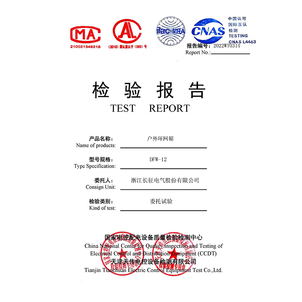 DFW-12戶外環(huán)網(wǎng)箱 檢驗報告