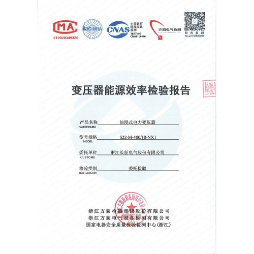 S22-M-400/10-NX1油浸式電力變壓器 檢驗報告