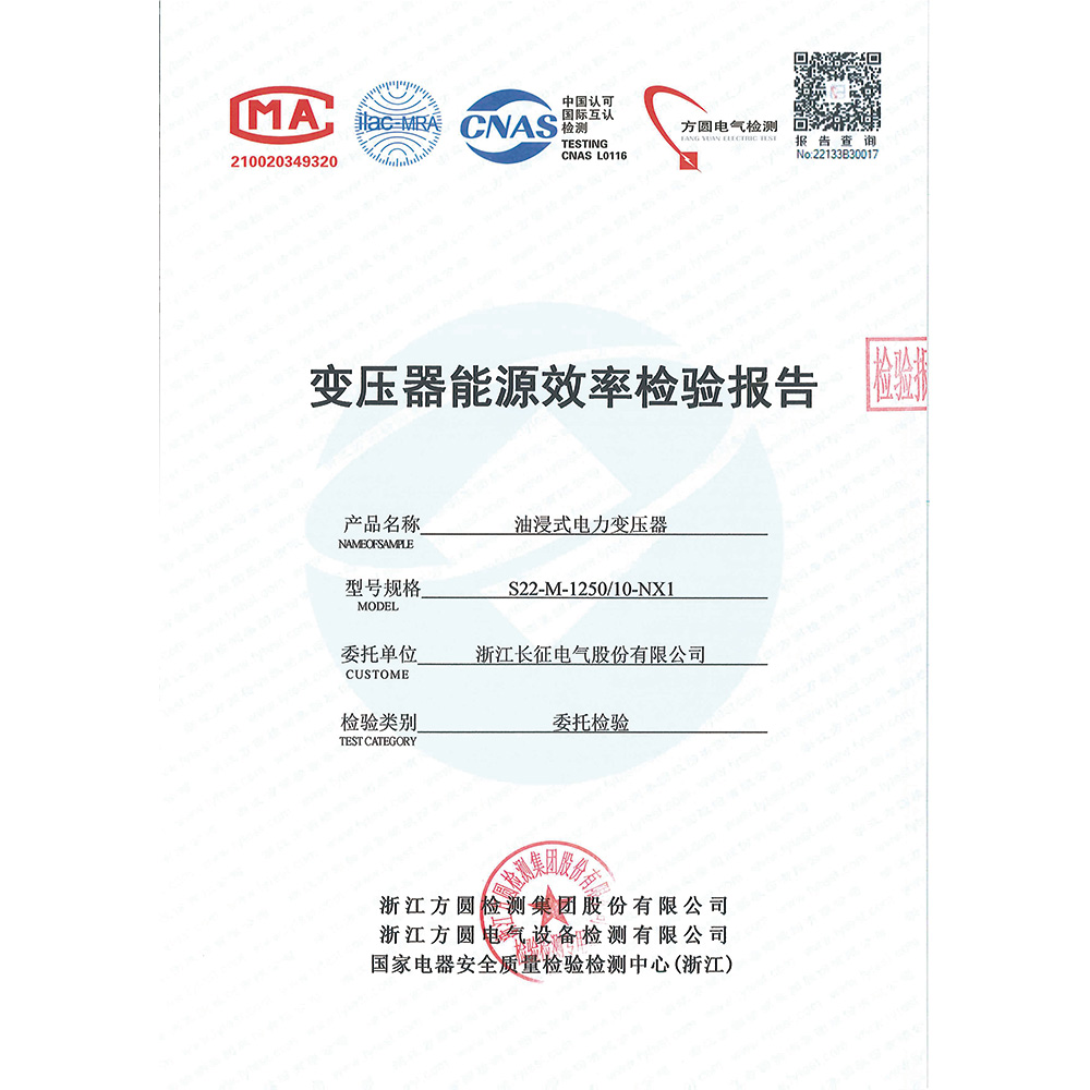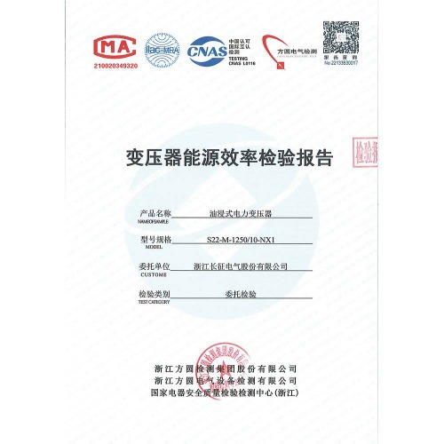 S22-M-1250/10-NX1油浸式電力變壓器 檢驗報告