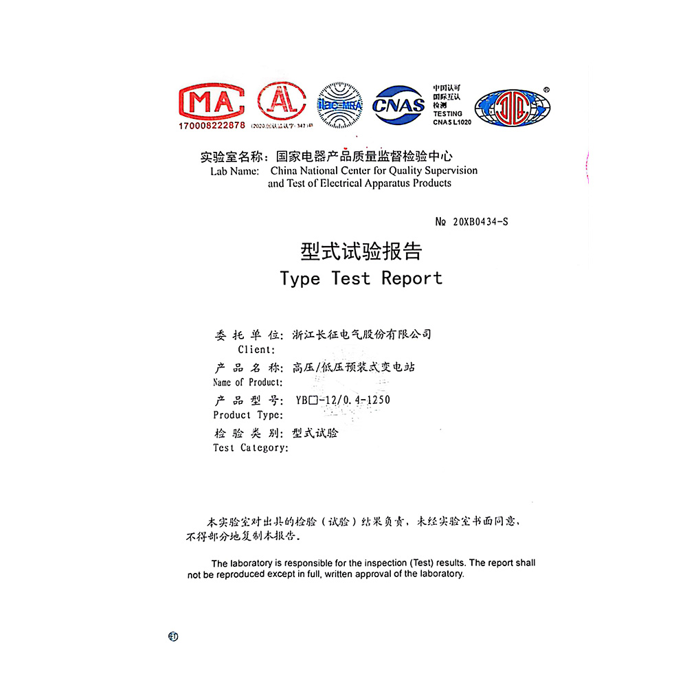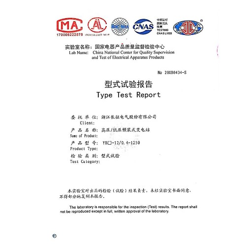 YB□-12/0.4-1250高壓/低壓預裝式變電站 試驗報告