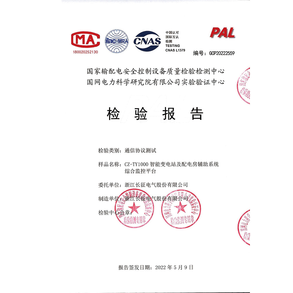 CZ-TY1000智能變電站及配電房輔助系統綜合監控平臺 檢驗報告