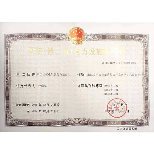 承裝(修、試)電力設施許可證