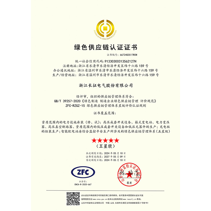 綠色供應鏈認證證書中文