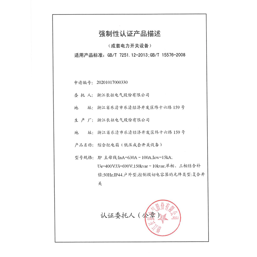JP 630-100A綜合配電箱強 制性認證產品描述