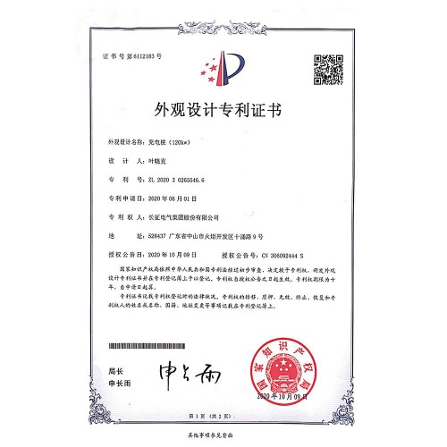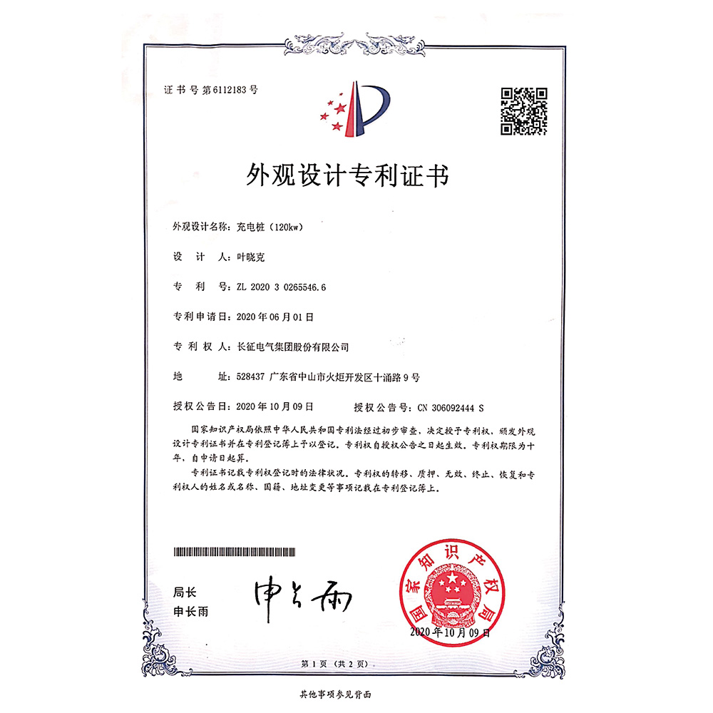 充電樁 外觀設計專利證書