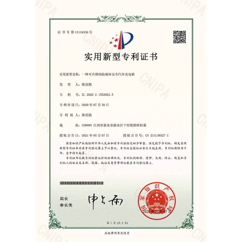 一種可升降的防破壞安全汽車充電樁 實用新型專利證書