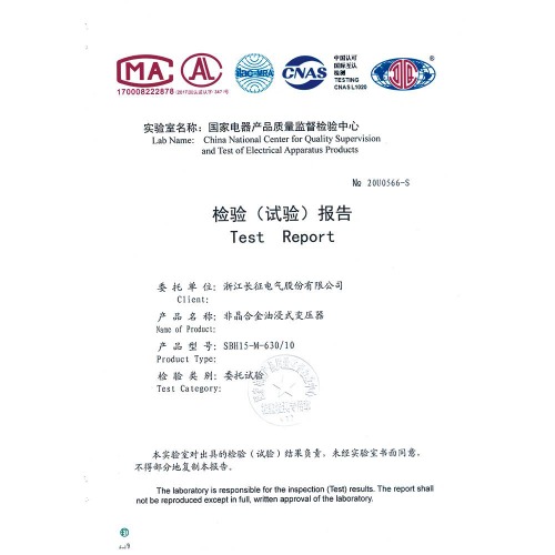 SBH15-M-630/10非晶合金油浸式變壓器 檢驗報告