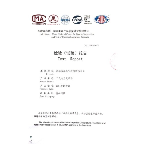 SCB13-500/10干式電力變壓器 檢驗報告