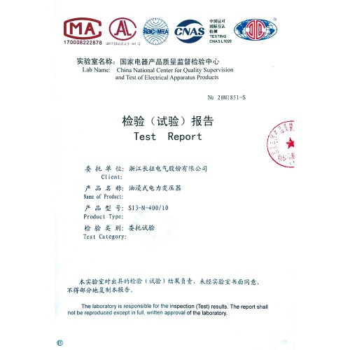 S13-M-400/10油浸式電力變壓器 檢驗報告