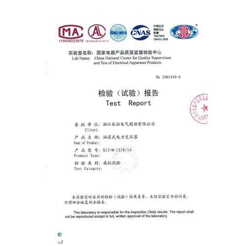 S13-M-1250/10油浸式電力變壓器 檢驗報告