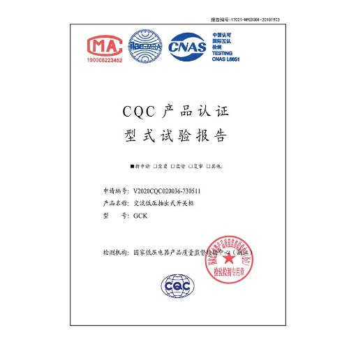 GCK(400A~1600A)交流低壓抽出式開關柜 CQC型式試驗報告
