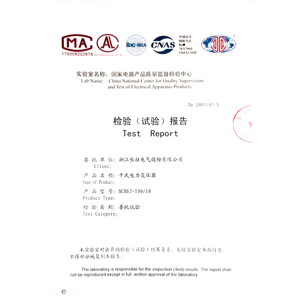 SCB13-2000/10干式電力變壓器 檢驗報告