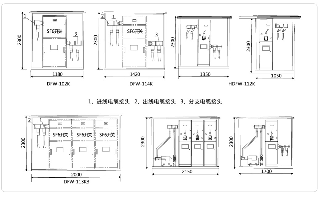 ● 采用預(yù)制式帶電可觸摸硅橡膠電纜頭,全密封、全絕緣、免維護(hù),可靠保證人身安全; ● 結(jié)構(gòu)緊湊,外形小巧美觀,不銹鋼雙層箱體,使用壽命可達(dá)二十年以上; ● 在不影響主網(wǎng)運(yùn)行的前提下,實(shí)現(xiàn)區(qū)域停電檢修,減小停電范圍; ● 可配一臺(tái)或多臺(tái)SF6負(fù)荷開關(guān),接線方式靈活多樣,分支出線最多可達(dá)8回路; ● 可選避雷器、短路故障指示器、限流熔斷器等,滿足用戶各種要求。產(chǎn)品型號說明